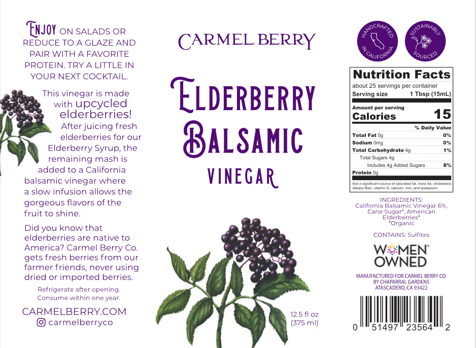 California Balsamic Vinegar, Organic Cane Sugar, Organic American Elderberries