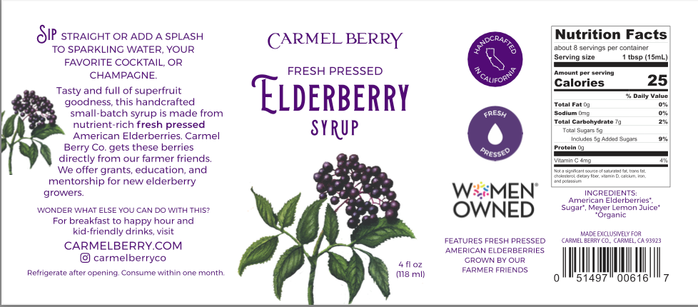 Organic American Elderberries, Organic Sugar, Organic Meyer Lemon Juice