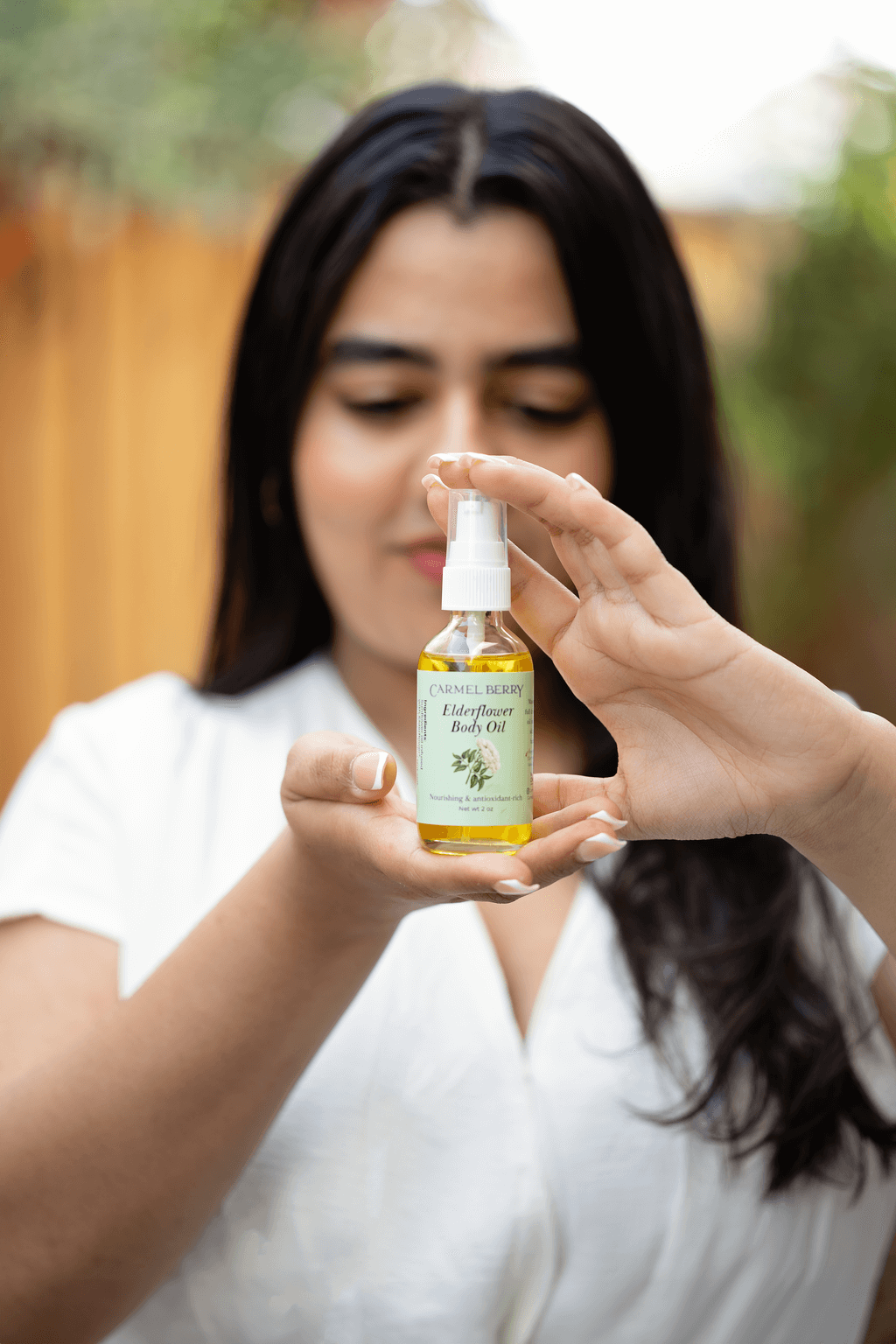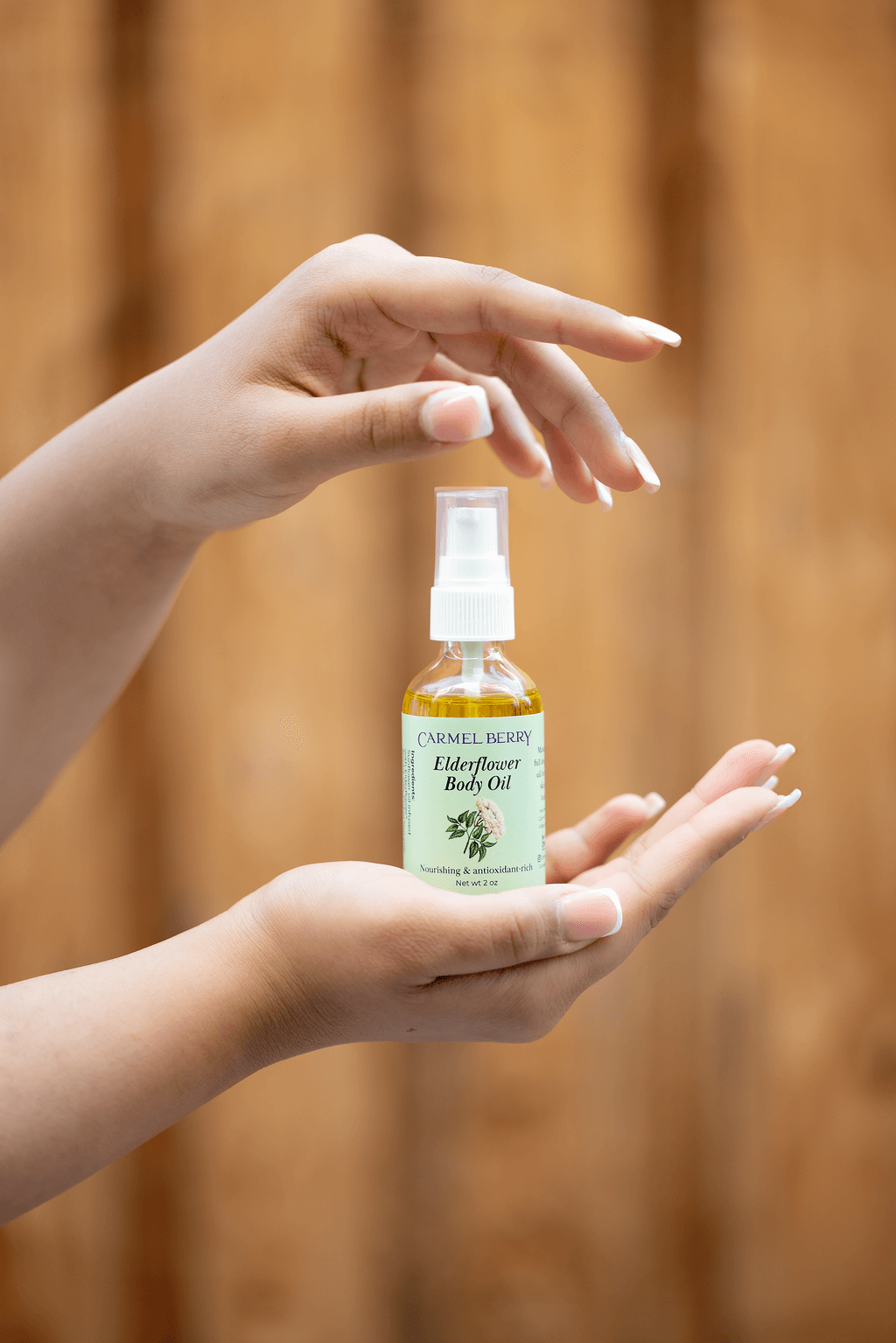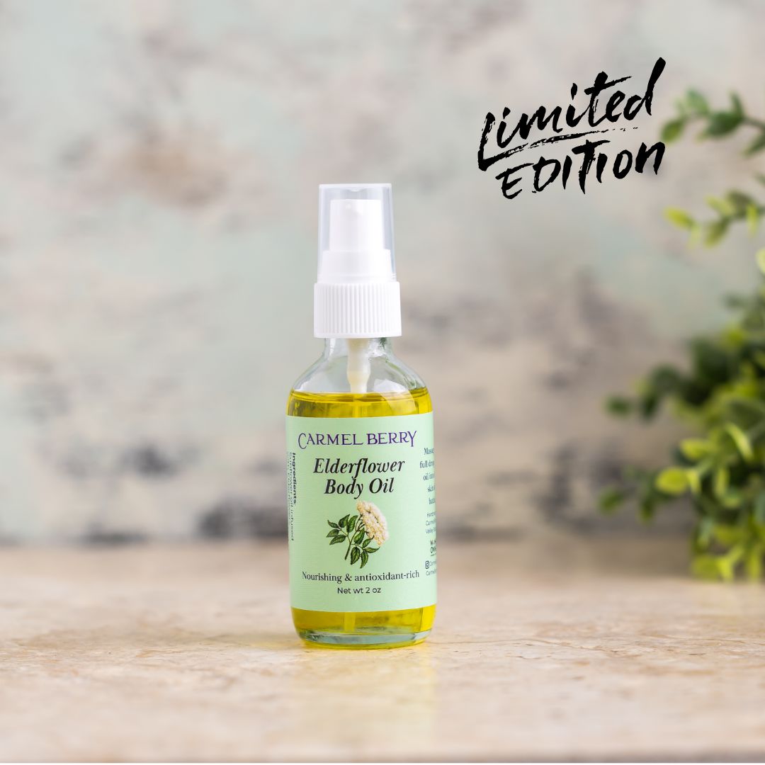 Our Elderflower Body Oil harnesses this flower’s power in an all-over Body Oil with a light feel and easy absorption. Organic sunflower oil is infused with our California Elderflowers and blended with jojoba and kukui oils, both of which are excellent for sensitive skin and packed with nourishing vitamins including A, C, and E. The warm scent of the elderflowers is rounded out with a touch of lavender and mugwort essential oils.