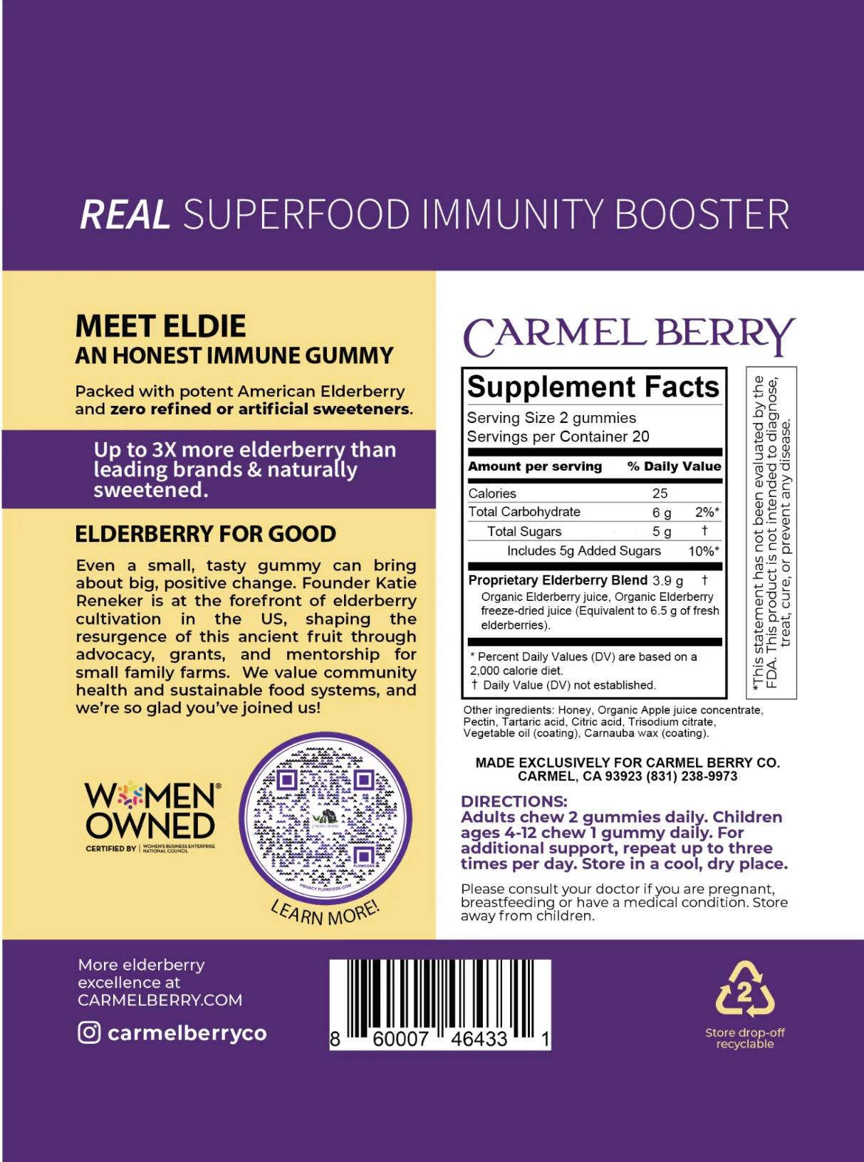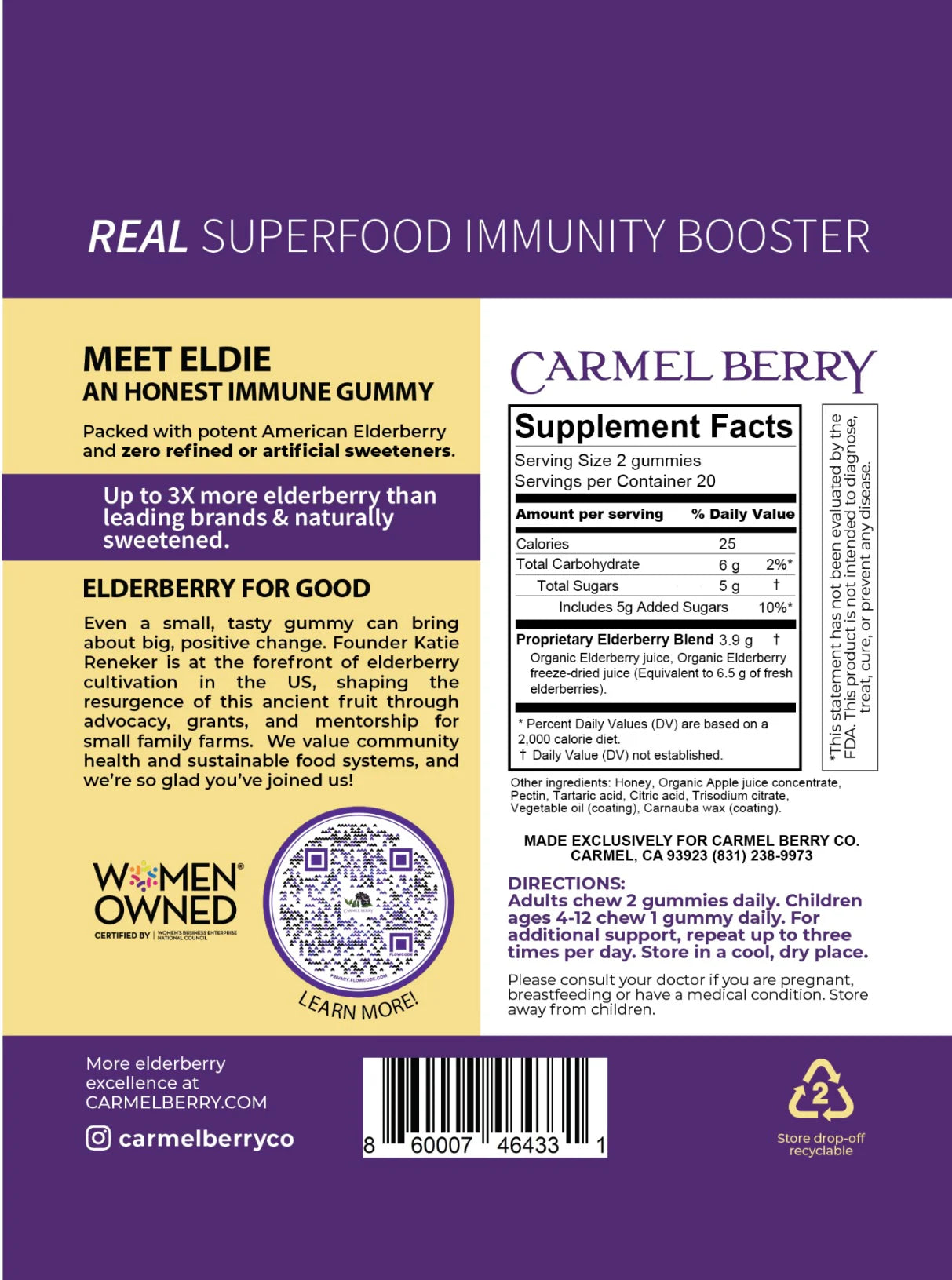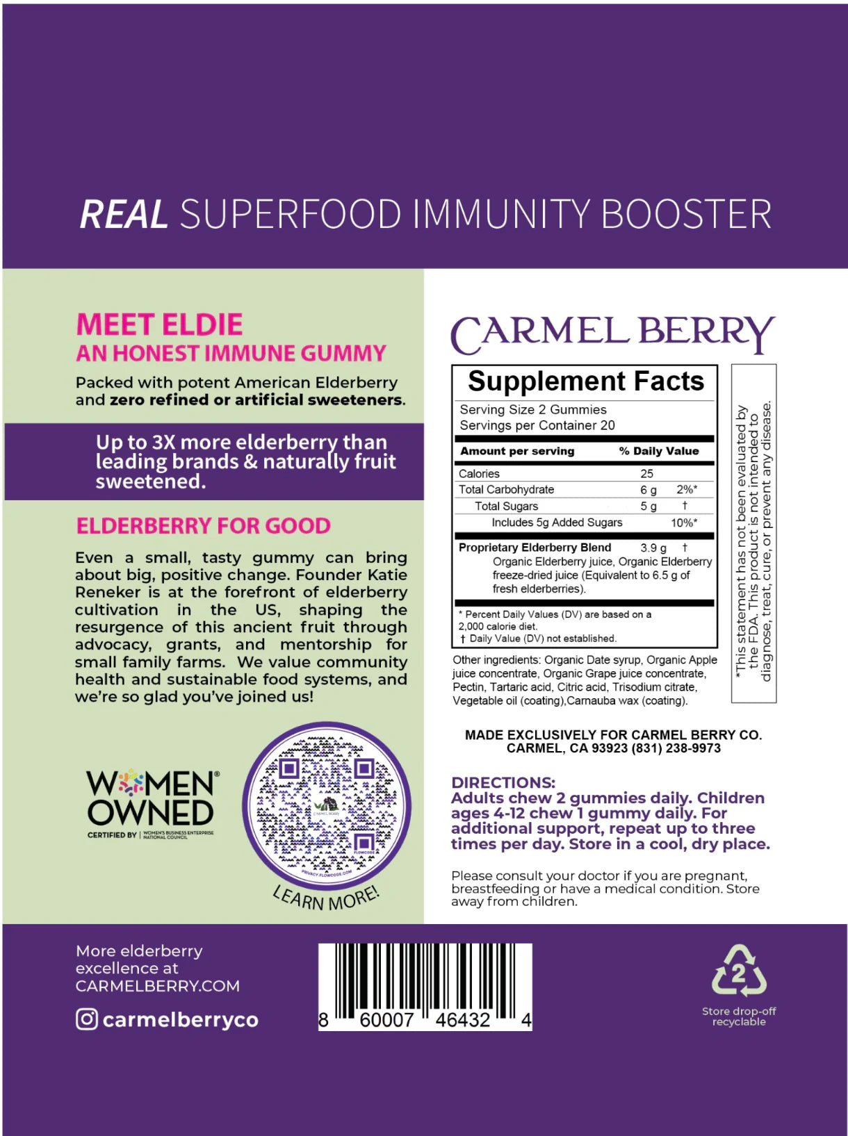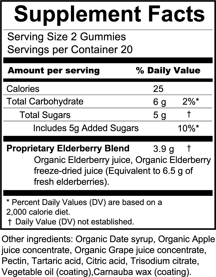 - The only gummy on the market made with fresh-pressed organic American elderberry and sweetened with real fruit